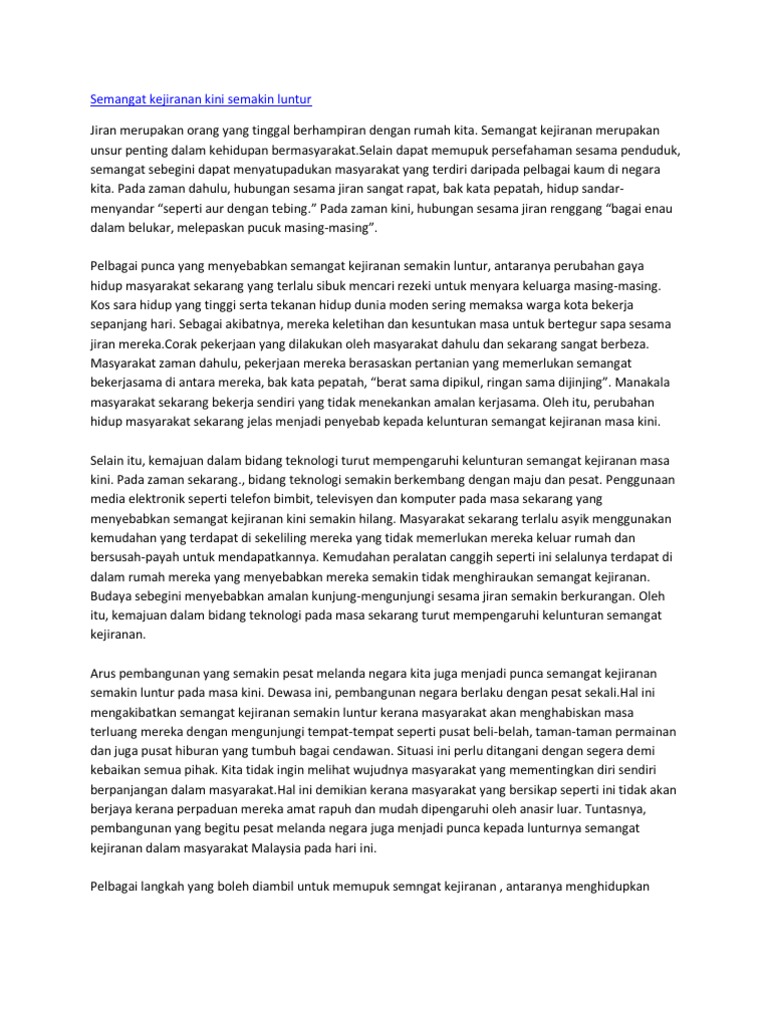 Semangat Kejiranan Kini Semakin Luntur Pdf